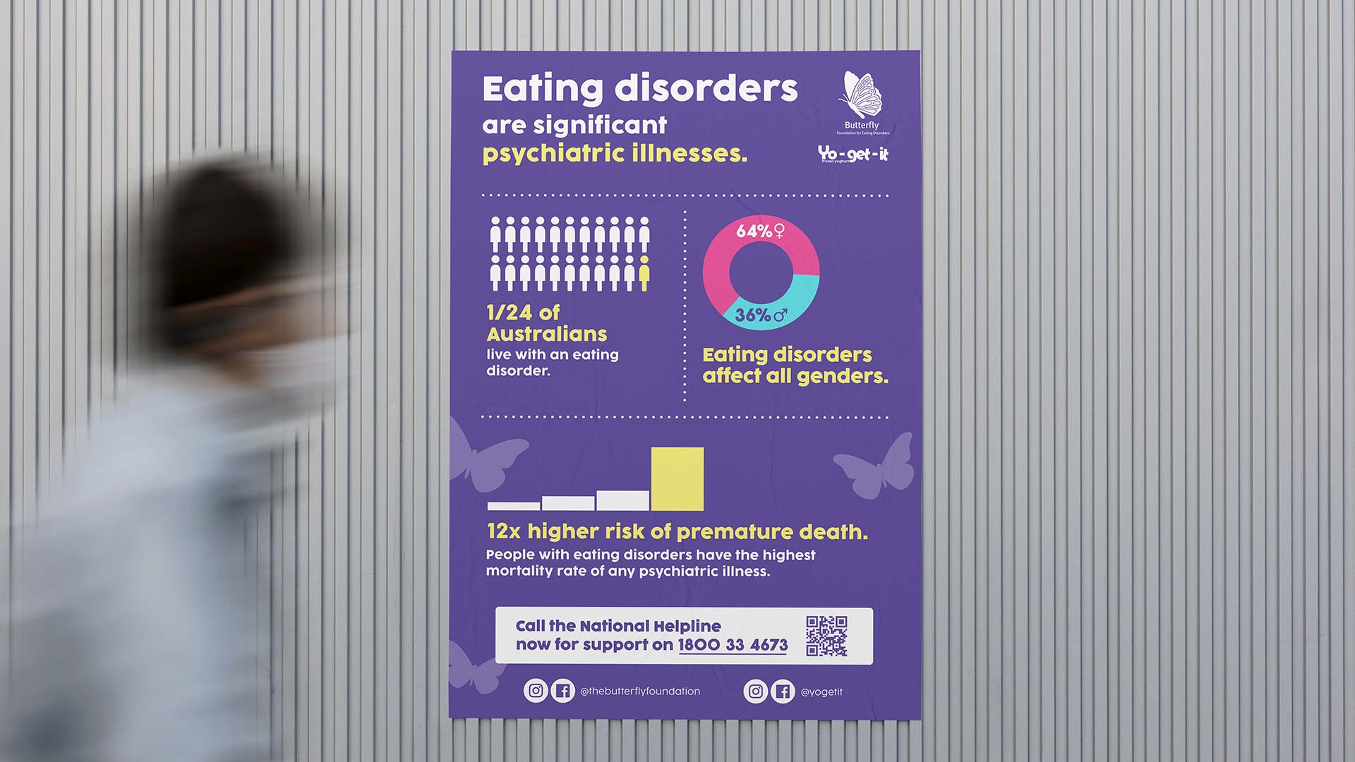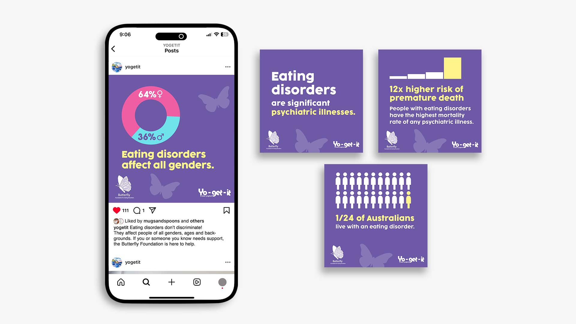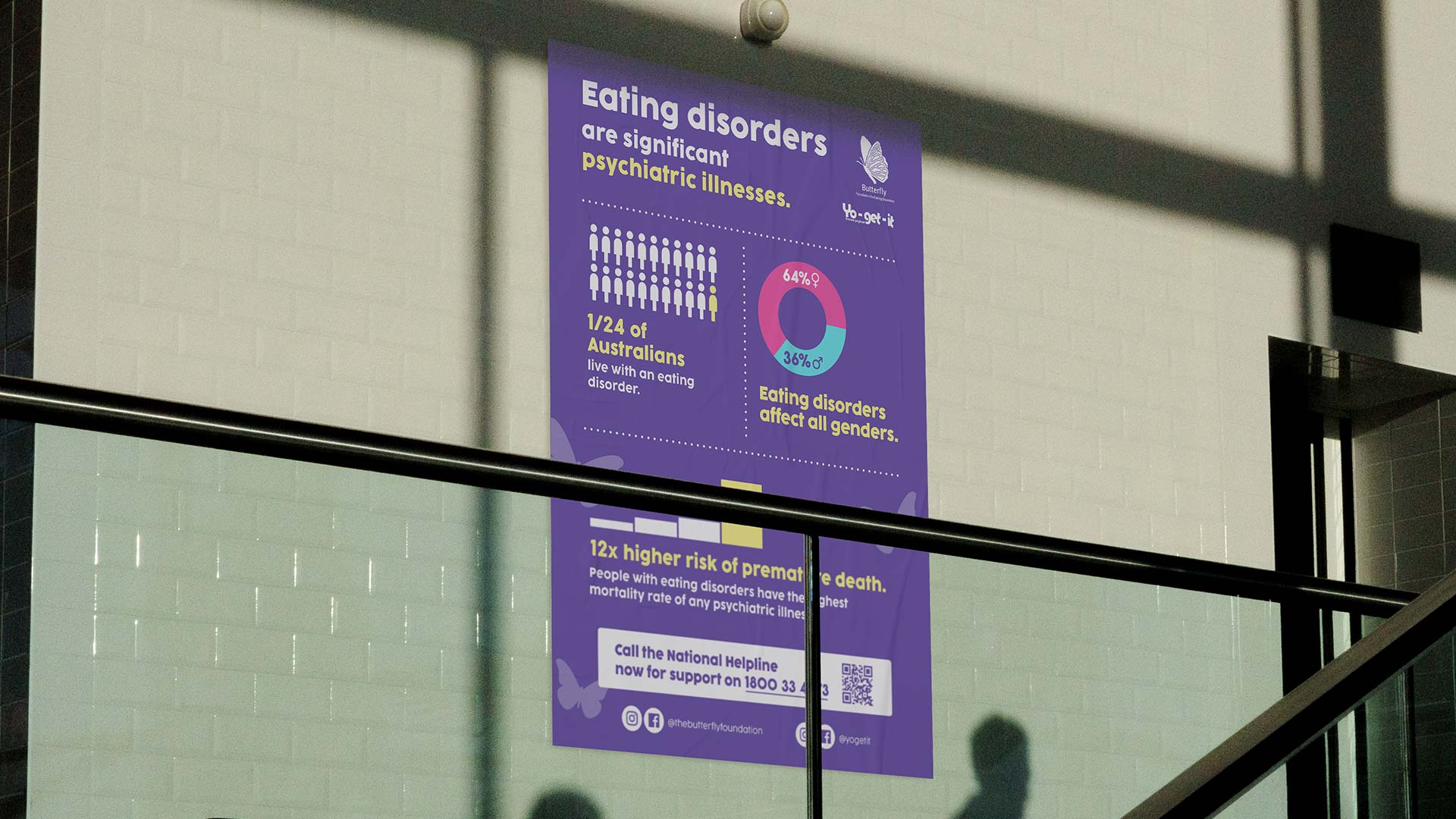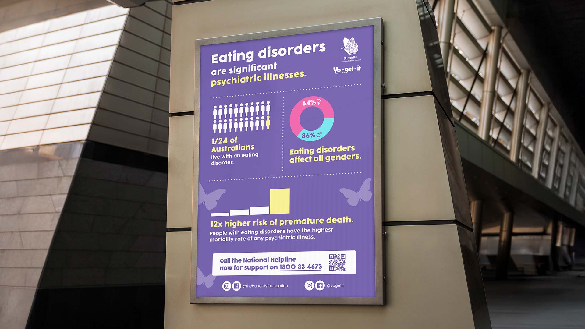 Yo-get-it Frozen Yoghurt partnered with The Butterfly Foundation to raise awareness around eating disorders, which are highly stigmatised psychiatric illnesses that often go unspoken. The goal was to educate the public, encourage help-seeking behaviour and support fundraising efforts.